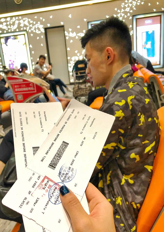 3月14日晚上下班后,2对情侣4个人分两拨赶往杭州萧山机场,✈️直飞亚庇机场,机场比较小,所以登机托运办理都很快(虽然上海飞比较有的买买买),20:30起飞,难得都没有延误,在凌晨🕛1:30到达沙巴机场。