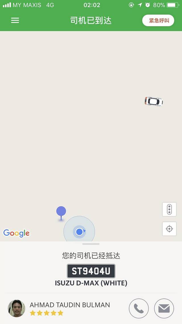 凌晨2点拿到了行李箱,准备去亚庇城区,出来就看到grap打车app的宣传,马上下载了一个,就开始绑定了银行卡打车,知道了酒店地址,机场定位要是不知道,拿着手机找当地仍帮打下就可以了(移动sim卡,再国内就办了移动无限量5天包118元,畅游无限流量~打10086办理就习惯,比买当地电话卡方便多了);想要说明的是,这个grap虽然划算,都是一口价,但是他们这个地图,真的是,看也看不出什么东西,如下图,都空白的,都没什么值得参考的。