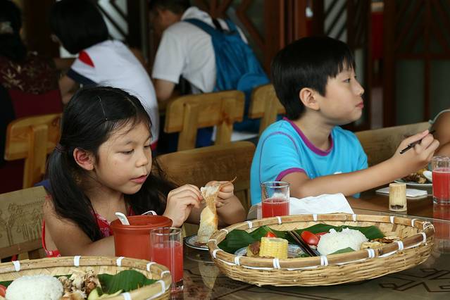 午餐是簸箕盆装的套餐,很有特色。