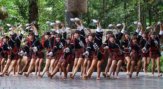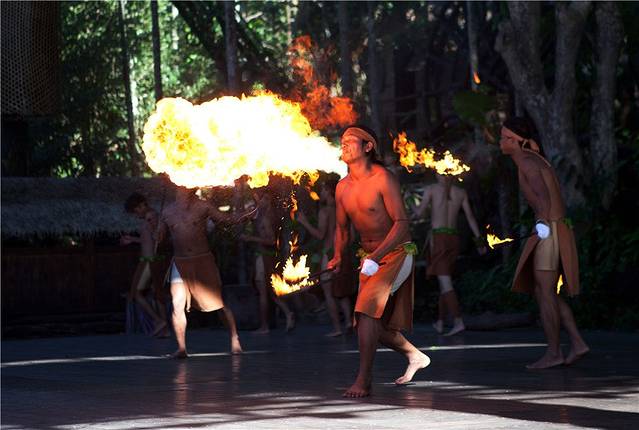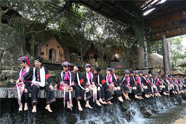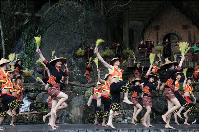 先观看了一场大型的实景民族歌舞剧《槟榔•古韵》。如梦如幻,构成一幅幅和谐秀美的画卷。一个场景便是一段故事:有原始的钻木取火、求婚、播种、织布,丰收时载歌载舞,舞台上鸡鸭牛羊同登台演出,阿妹还与游客台下互动,游客置身其中看旖旎风光、听婉转黎歌,感受大自然的韵味、领略民族的风情,为这次旅行增添了文化气息,也可以说是文化艺术之旅了。槟榔谷以其独具韵味的原住民风和神秘迷人的原始雨林风光风靡着海南岛,更吸引了八方游客。