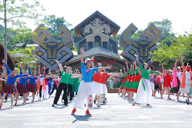 进到槟榔谷,黎族的阿哥阿妹很热情,竖起大拇指一直在喊:波隆波隆!问了一下才知道叫“你好,你很棒,你很帅,你很靓……”反正都是在夸你的意思啦!