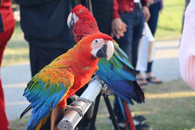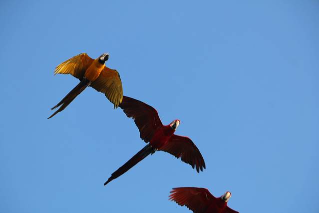 第一次看见在天空中翱翔的金刚鹦鹉 帅呆了!