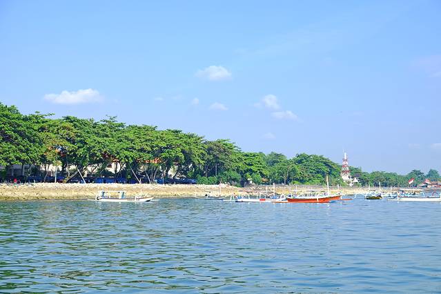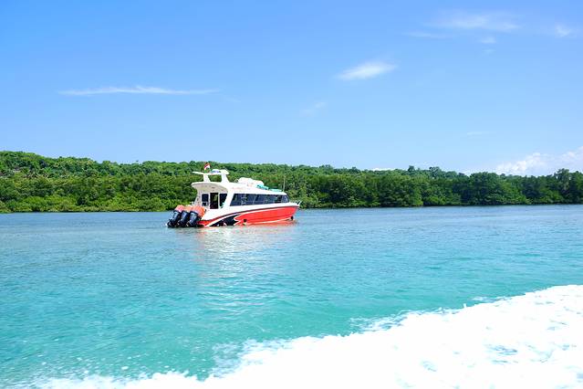 从金巴兰酒店乘车到达港口需要40分钟左右,清晨,港口已经聚集了许多中国游客,等待安排好船只,佩戴上各家的手环。