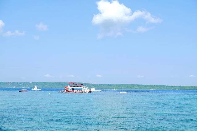 介于上次购买懒猫旅行在仙本那的行程还很满意,这次依旧订了它家行程,蓝梦岛一日游浮潜套餐369元/人,套餐里介绍浮潜有3处,包括蓝梦岛上游览。一般当地游会带团到达蓝梦岛附近的佩尼达岛上歇息、更换泳衣以及吃团餐,遇到好几个团都是这样安排,其他没参加过的团在这里我不多做评论。关于这点我没什么意见,不过问题比较大的在浮潜和逛蓝梦岛。