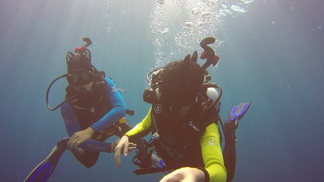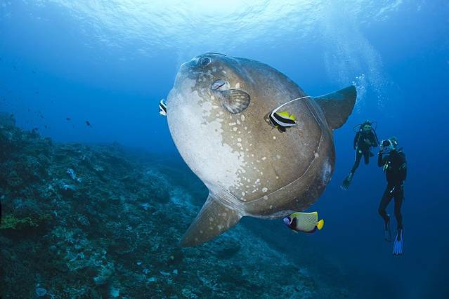 后来潜导说这两天看不到molamola完全怪我俩,因为我们带了猫咪潜水头套,所以把鱼吓走了,什么鬼逻辑!