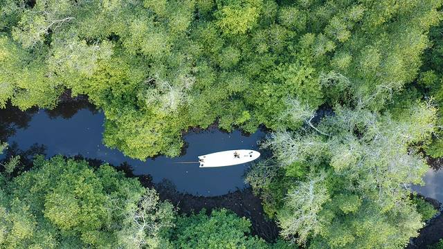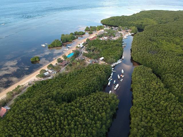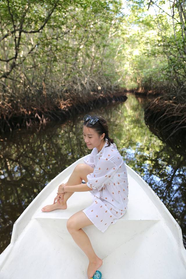 蓝梦岛上有一片很大的红树林,位于岛上的东北部,红树林的入口在岛的最北部。开摩托车到红树林入口处,就能看到很多小船停泊在岸边,选择的时候多问几家比比价。