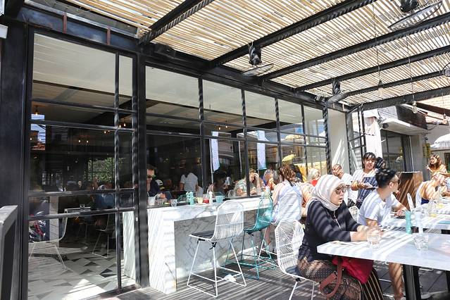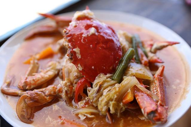 这家的海鲜网评还不错,事实上味道确实不赖,我们最后选了茄子千层面,招牌蟹,以及辣海鲜汤,最后都连汤带汁吃个精光。昏昏欲睡的中午,饭后我们又在这个吧台上呆坐了很久,直到一点多,看到外面排队等位的人越来越多,只能依依不舍地离开,这么好的风景,总不能被我俩一直独占嘛。