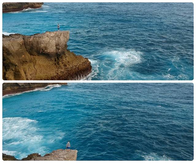 正如一开始所说,越是看似没路的地方越是能找到美丽的风景。这个地方,悬崖下的海水很浅很清澈,但是海浪却很大!所以站在这个悬崖往下看,能看到汹涌的海浪一次次扑过来,而在每一次海浪褪去之后却能透过清澈的海水看到地下颗颗分明的石子,就像山间的溪流一般温柔透明!这种悬崖海浪和山涧溪流的感官碰撞美妙极了!要是已经到了jumping point的话一定要去旁边看看这个地方,虽然我不知道这里的水位是一直这么低还是恰好被我看到这一幕