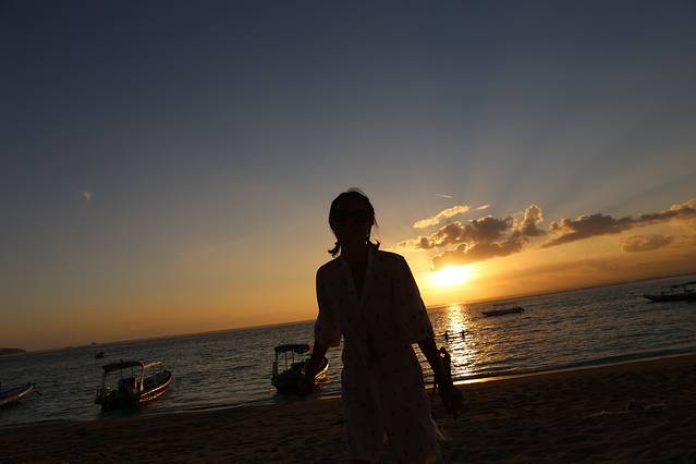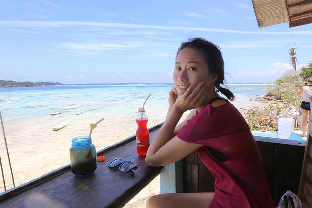下午四点左右,海滩上的蓝梦岛一日游的有课已经很少了,剩下的都是躺在沙滩上晒太阳的住客。这个时候的太阳褪去了午后阳光的活力和热辣,剩下的就是温暖。