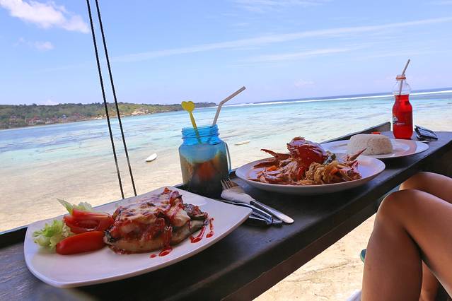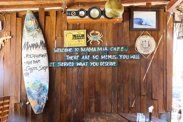 然后就在这个浅谈的悬崖边上,有两家餐厅,景观特别好。其中一家叫mama Mia的海鲜餐厅,也就是我们这天选择的餐厅。出品非常不错,推荐中午去,可以一边看水稻海浅滩,一边吹着海风吃午餐。中午最好是十一点半就过去,才能占到看海的吧台位置。