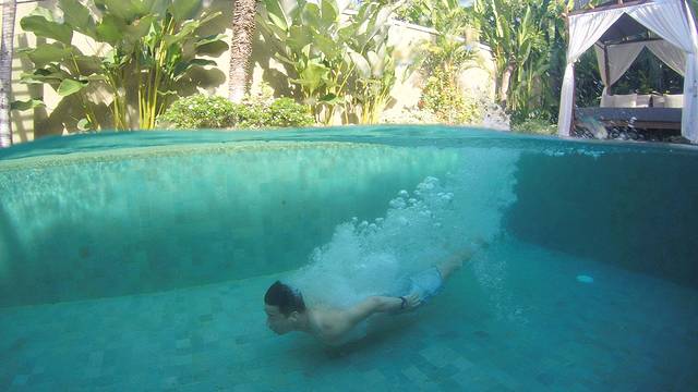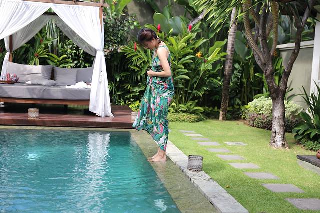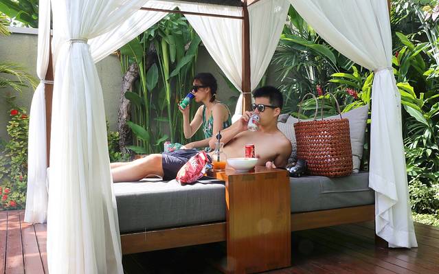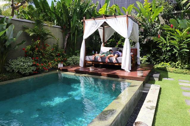 下午气温比较高,可以在会房间的泳池玩玩水。虽然水巴厘岛在热带,但是到了七八月份气温比较冷的时候,上午或者晚上下水游泳还是有点冷的。