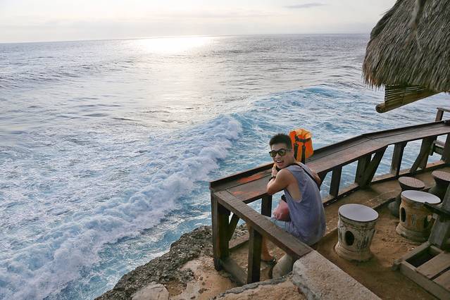 这个jumping point是其实是个悬崖酒吧餐厅,这里算是cenengan的最西端,这个酒吧里有个突出去的跳台,每当水位比较高的时候,你就可以从这里往下跳,感受一次悬崖跳水的刺激。上回来的时候,我们带上了泳衣和更换的衣服想来这儿狂野一番,但这儿当是缺不明原因的没开门,当时我们是遗憾而归。结果今天来,虽然开门了,但由于水位太低,我们又无法玩跳水,真的好遗憾好遗憾!