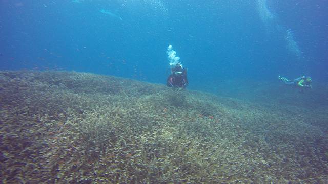 这次来蓝梦岛潜水虽然没有遇见翻车鱼,但却遇到了大流,在水晶湾潜水的时候流超级大,我们一下潜就全体扒着海底的石头久久无法前进,流实在太大了,当是我连扣着石头的手指都开始疼了。在我前面的一个哥们儿企图抱着一个大石头固定住自己,结果连人带石头直接被吹起来了,这一幕也是没谁了!后来扒了将近十分钟,潜到看流稍微小了一点,就示意我们继续前进,前进没多久遇到一股比较强烈的上升流,大家开始慌乱地扣住石壁固定自己,结果jk一下没抓住东西,直接被吹了上去,事情发生得太快潜导也来不及去拉扯他,好再这上升流后劲不足,jk卸掉了所有的气阀,全力往下游,最好终于回到了组织的怀抱。后来潜说当是看到jk一下子被吹上去也有点慌,但看他还能顶住流往下游久稍微安心了一点,然后就在心里呐喊:加油!加油!。。。。。。