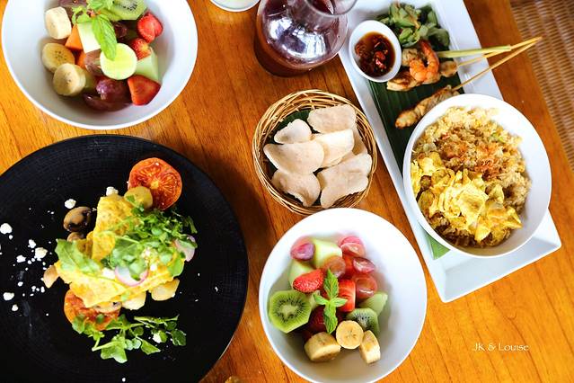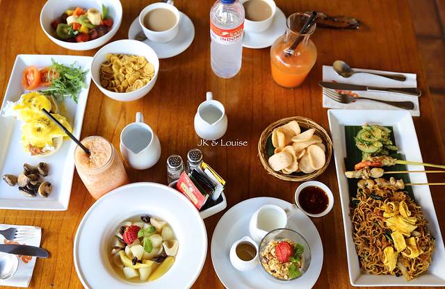 早上睡到自然醒,然后服务员会送来一份非常丰富的早餐,一般是前一天晚上在跟酒店预订号早餐的内容和送餐的时间,到了时间他们就会把早餐送到房间的院子里。