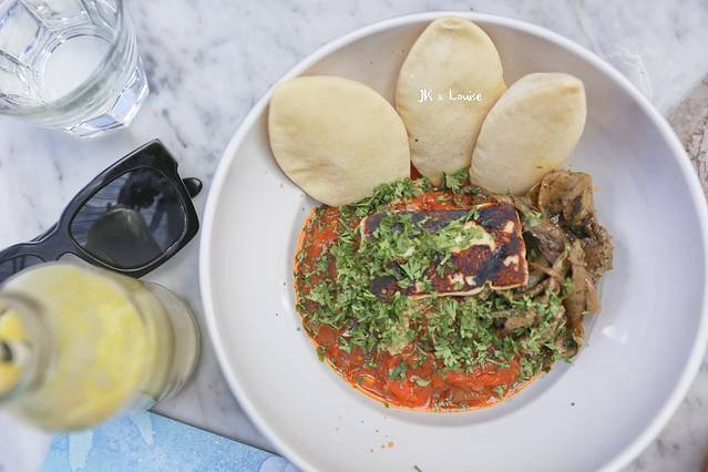 这个不知道是什么鬼,但真的真的特别好吃!!!因为点的时候只看懂是煮蛋配xxx之类的东西,实际上就是盘子里有两枚半熟的水煮蛋,然后上面盖了一层类似于番茄意面酱,最上面盖了一层孜然牛肉和一块类似于烤豆腐之类的东西,然后吃的时候可以把他们夹到边上这个类似于馍的面食里面,一句话概括大约就是装逼版肉夹馍吧!