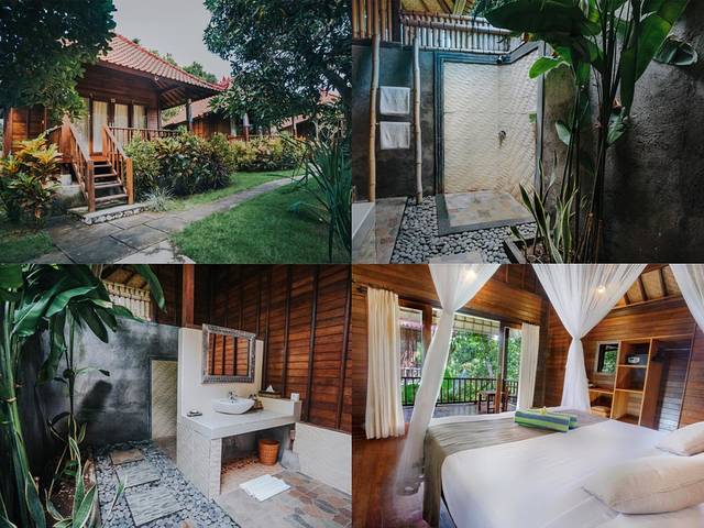 这次在蓝梦岛的酒店也是临时定的,因为确定要去巴厘岛玩也就是出发前的三个星期,蓝梦岛的酒店是提前两个星期定的,但说实话,看上去比较好的酒店都没有房了。不得不说蓝梦岛上的酒店还是挺抢手的。我们这次的酒店是在山上,上岛后坐着小皮卡一路颠簸着上山,开过蜿蜒破烂的小山路,大约15分钟后抵达我们的酒店。