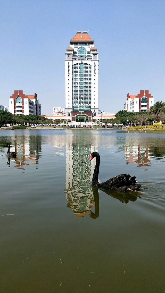 芙蓉湖,厦大美景之一,有几只黑天鹅生活在这里,已经不怕人了,在湖边喂食可以顺手摸摸它