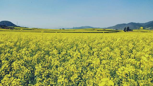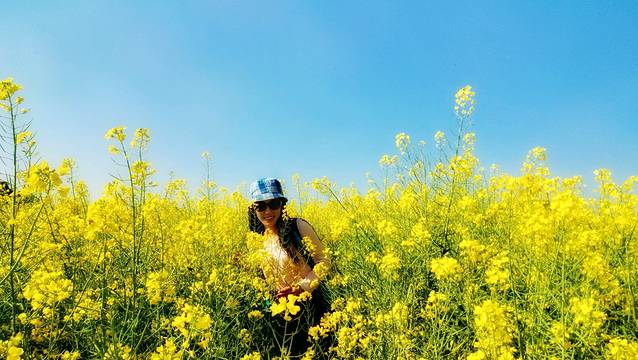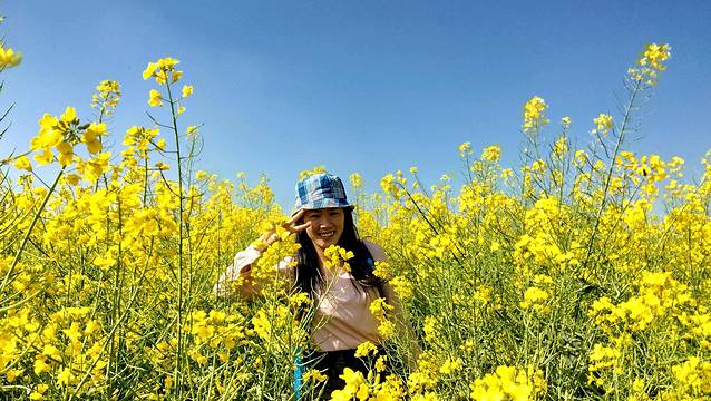 真正身临其境,你才会切切身体会,站在哪里都是风景一—你可以远眺它的气势,近看看它的姿色。游走于花海中,可以感受动人心魄的花海春潮,阵阵春风吹拂,带来阵阵花香,沁人心脾,带起层层金色涟漪,撩动心弦