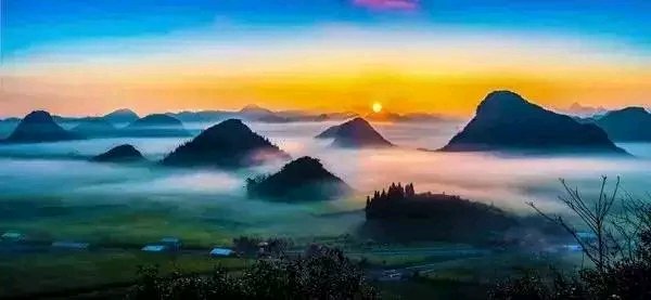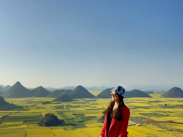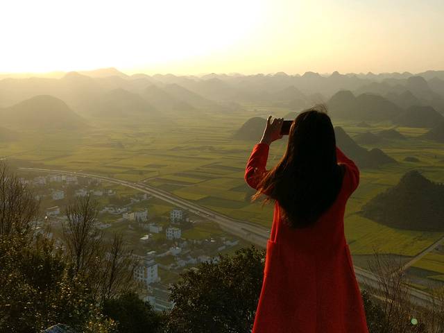 罗平蜂蜜园农家一一不在花海中,但是不远,出门往屋后的路就是通向金鸡峰最高观景台,最佳日出和日落点,住四楼一样可以看到日出;往左走几百米然后往右就是通向花田的隧道!但是如果想推开窗就是花海,要另另选交通工具有火车直达罗平,下火车后想简单快捷的话可以滴滴打车去金鸡峰,十几二十分钟就到金鸡峰丛,也可以到火车站右手边的罗平北客运站坐7路公交到罗平客运站门口,然后坐去板桥的面的去金鸡峰!我们的时间早,滴滴打车,直奔观景台等待日出!时间刚刚好