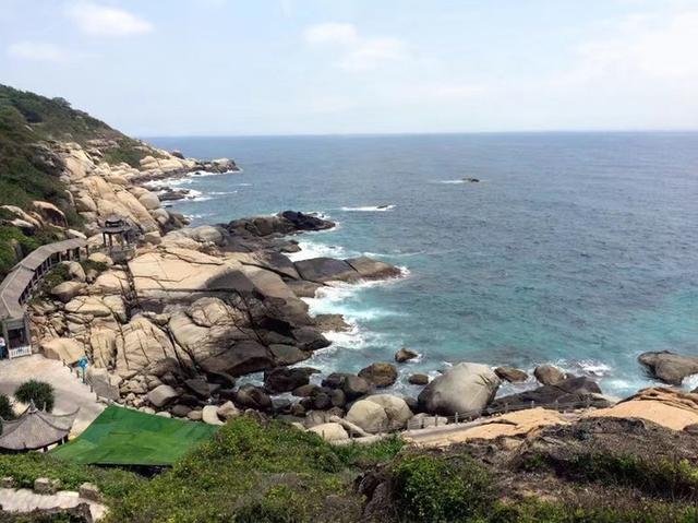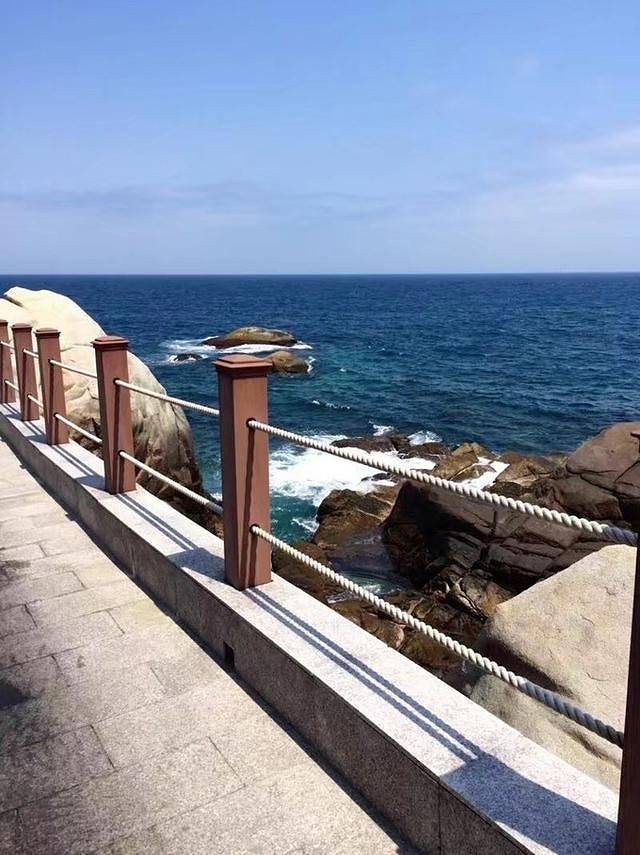 海洋之星需要爬上山看海,蜈支洲岛整个岛只开发了三分之一,还有三分之二没有开发,并且只能通过电瓶车观光,岸边全部都是巨大的礁石,海浪也较大,人是不可以步行的。海洋之星可以站在高处观看到震撼的礁石海浪,我们也顺便在这里将午饭解决了,所以耽误了较长的时间。
