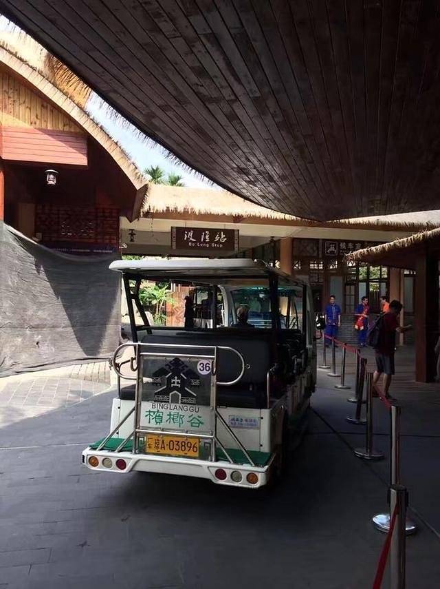 在槟榔谷里要乘坐电瓶车这样的交通工具,一个站点一个站点的浏览。主要听讲解,如果不听讲解很快就可以逛完了。