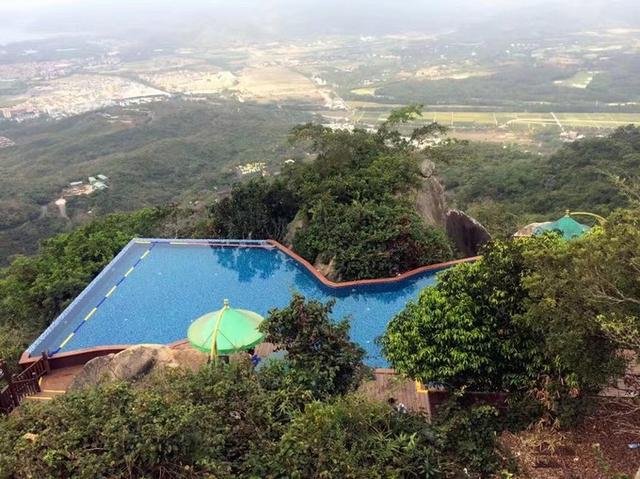 过了桥向山上爬一小段可以看到鸟巢的无边游泳池。