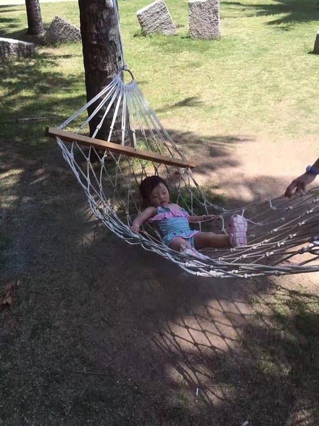 我们这次定的还是大东海,因为方便啊,吃的也多,换上游泳衣就可以直接冲进大海了。酒店其实是公寓,在金茂花园小区,小区管理不错,多是开酒店公寓的。我们订的是二室一厅的套房,正好适合一家人居住。装修条件挺好的,有个宽大的阳台,有个摇篮,可以边喝茶边坐在摇篮里看着大海。已经是凌晨3点多了,赶紧洗洗睡了。。。。。。