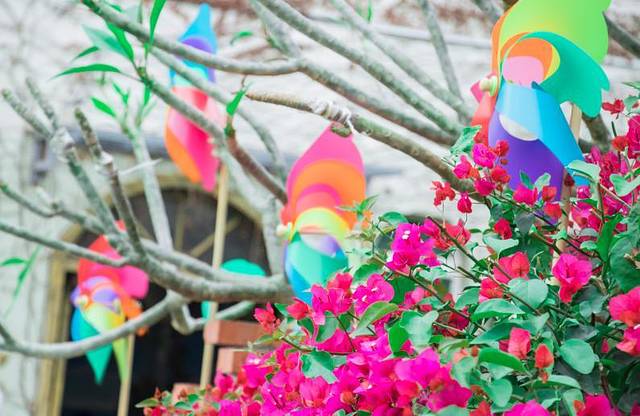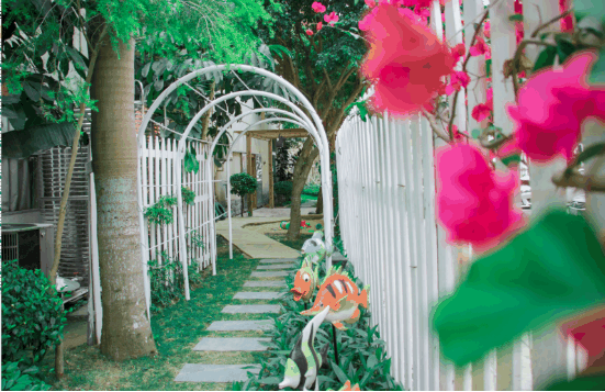 来到入住的酒店,乐乎爱琴海度假酒店门口一大片的三角梅,无比惊艳。酒店内也是绿荫环绕,完全符合我们此行赏花的目的呀。