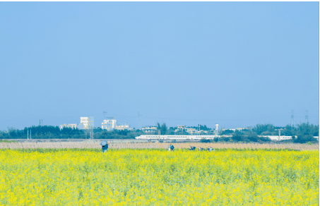 “十里菜花、黄金铺地”的景象呈现在眼前,金黄的菜花、翠绿的蔬菜、绿油油的麦子呈五颜六色地铺陈开来,在潺潺流水的映衬下,犹如一副立体的田园画卷。正巧还赶上了活动,各种表演,在花田里载歌载舞,让我感受到了北海的淳朴的民风民俗。