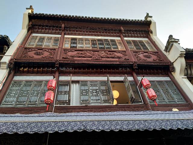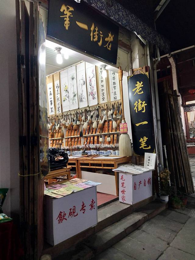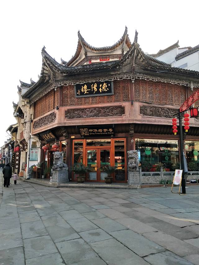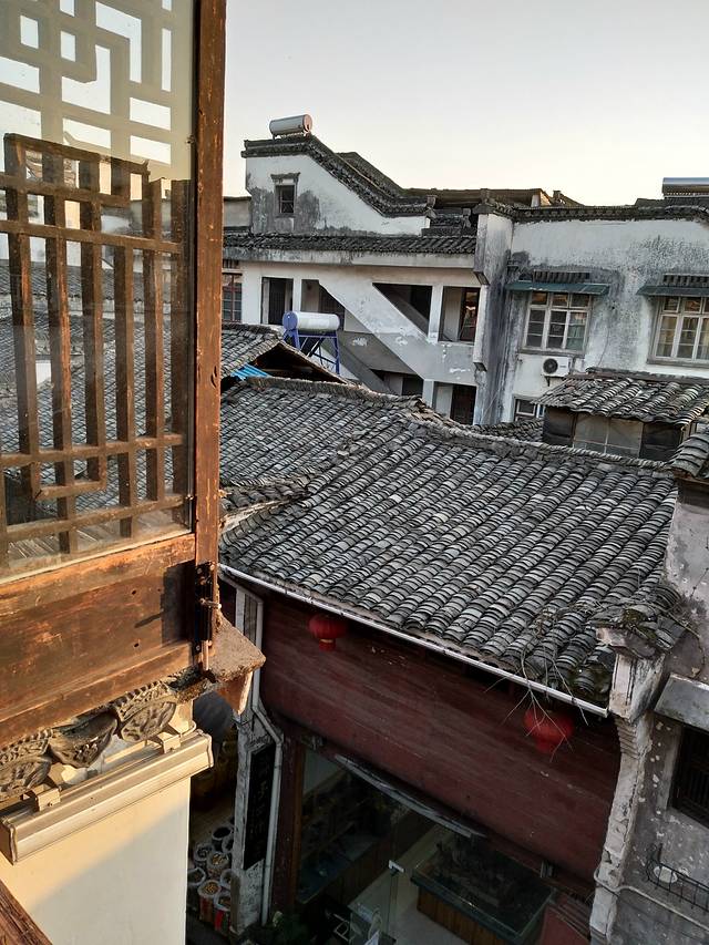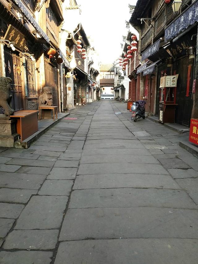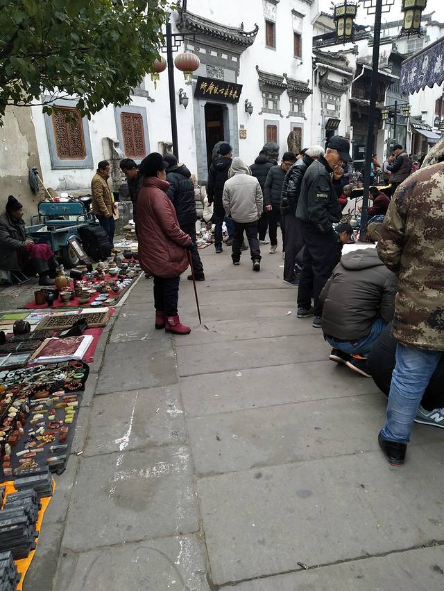 我们最后一晚是住屯溪的,所以在屯溪有订了一间客栈的房间,客栈老板很好,我们今天只是路过屯溪,问老板能不能寄放一下行李,客栈老板不仅让我们寄放,还让我们洗漱了一番,所以早上七点多到黄山火车站后,就打滴滴到客栈。客栈就在屯溪老街里面,出门逛街也很方便,放了行李,洗漱完毕后,就出门逛街了。老街的都还保留着整体的古建筑风貌,很多卖笔墨纸砚的店,还有古玩买卖的。