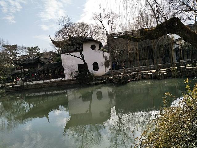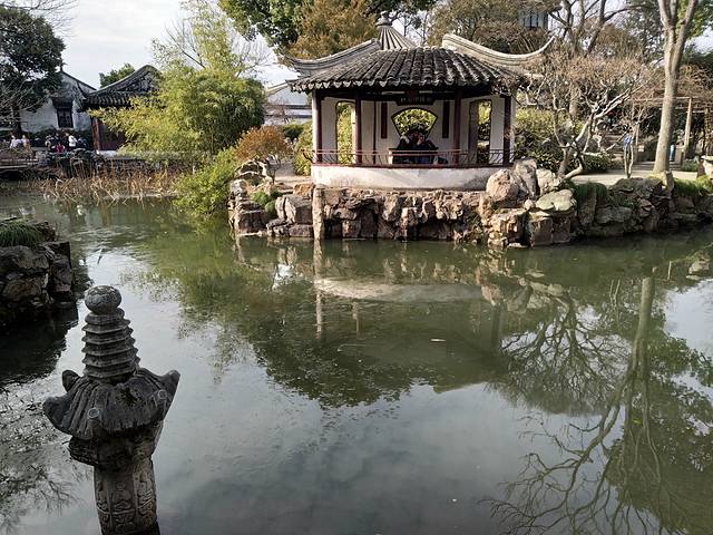 吃完哑巴生煎就前往苏州博物馆,我们太好吃了,一路上,边走边买边吃,到苏州博物馆之后,因为手中还有两杯大大的水,因为进入博物馆不能带水进去,又舍不得扔掉,所以我们决定先去拙政园,好在不远。