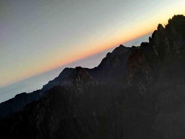 为了看日出,早早就起床,出去,前往清凉台。酒店有备羽绒服,但是我们去的时候,天气也不是很冷,穿自己的羽绒服就够了。一直想看云海,这次去看日出,终于看到了,虽然云海有点远。