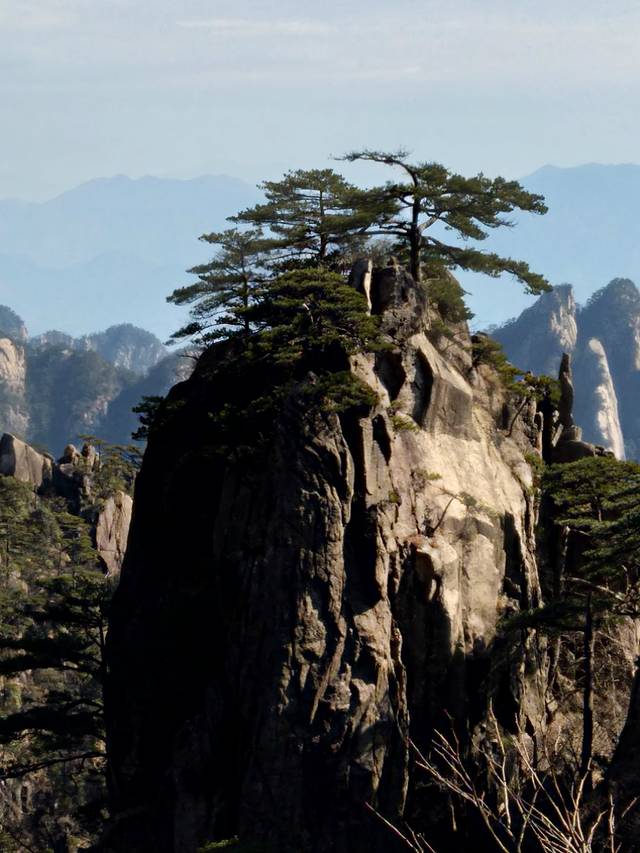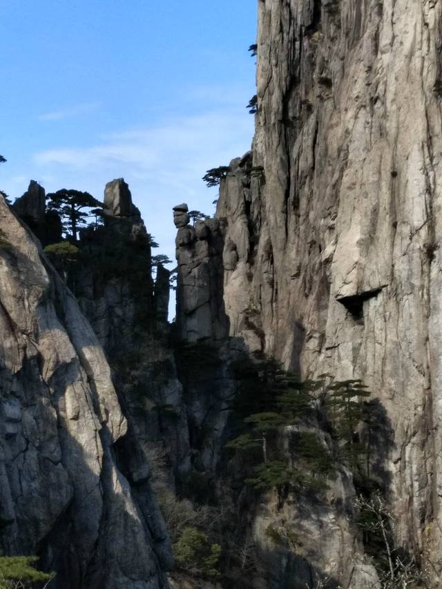 吃完早餐,整理后退房,往光明顶的方向出发,最后看完迎客松就坐索道下山了,途中通过“一线天”、“百步云梯”,这些都很陡峭的,要注意安全。我们没有上鳌鱼峰,可能是衣服穿多了,爬梯太累了,所以一看要爬梯就放弃了。