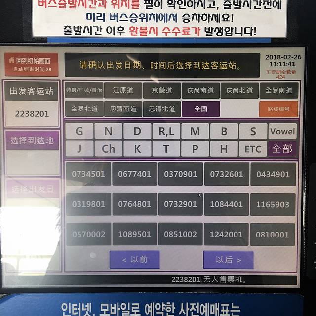 售票工作人员不会中文,可以提前写好你要去的地方(전주)或者用手机翻译器翻译好给工作人员看就好了。