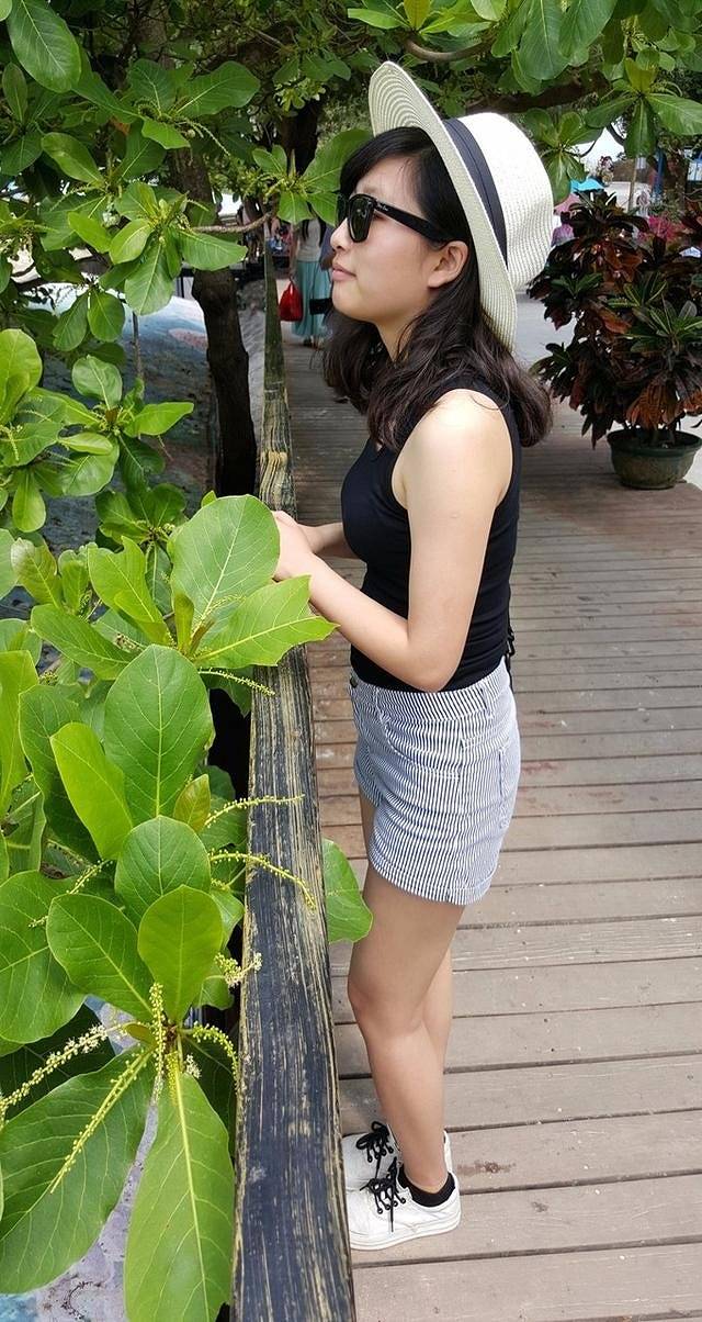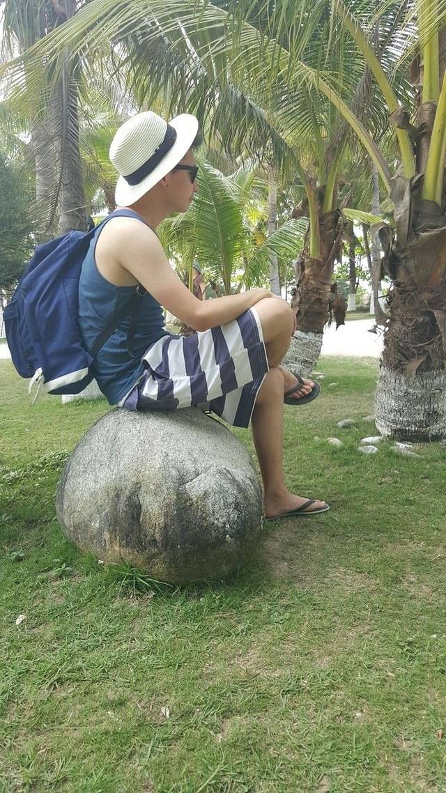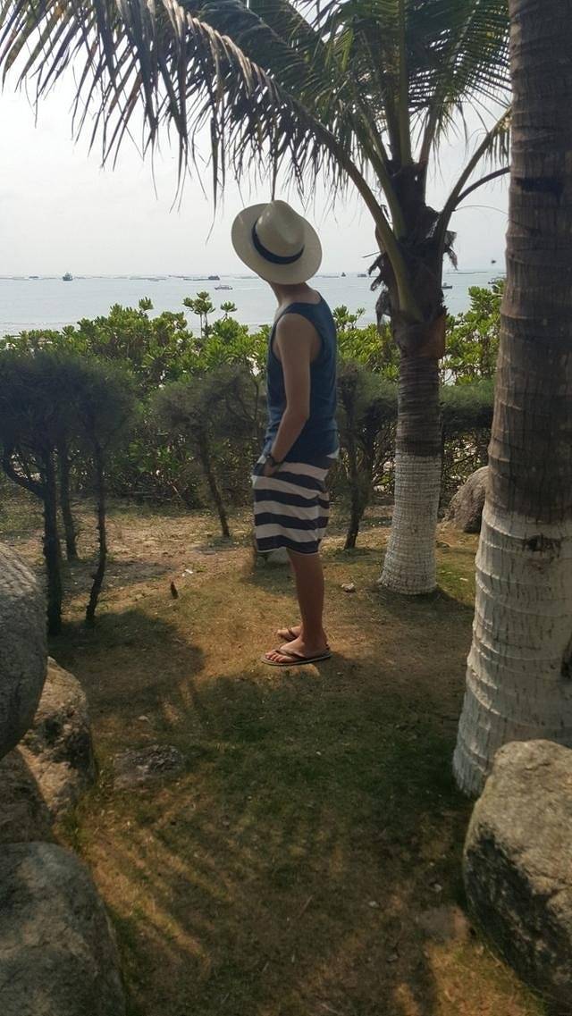 我们沿着椰子林走,一路都是张先生不厌其烦的给我拍照,然而他背着书包这么热的天背上早已湿透