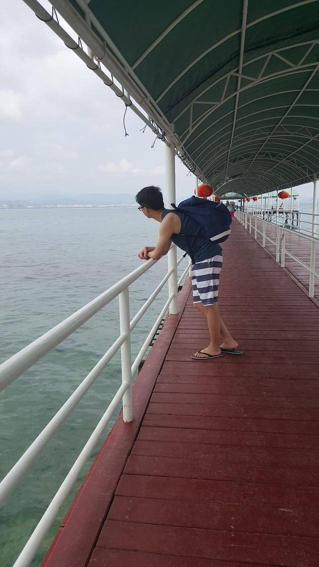 我们是早上9点出发,在楼下坐车去蜈支洲岛码头。三亚的交通真是要吐槽一下,红绿灯少的可怜,过马路完全是靠眼观六路耳听八方啊,哈哈。公交车阶梯式收费,还不找零,所以一路上我们浪费了很多不找零的钱~