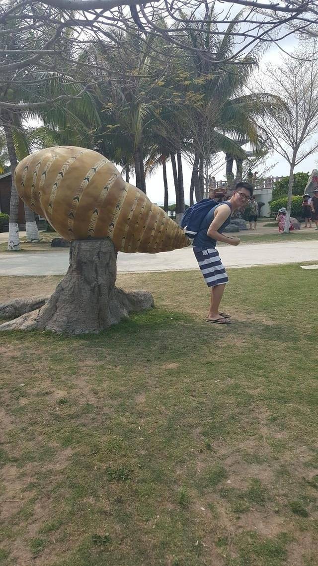 西岛上种了很多椰子树,里面有很多各种海螺的雕像
