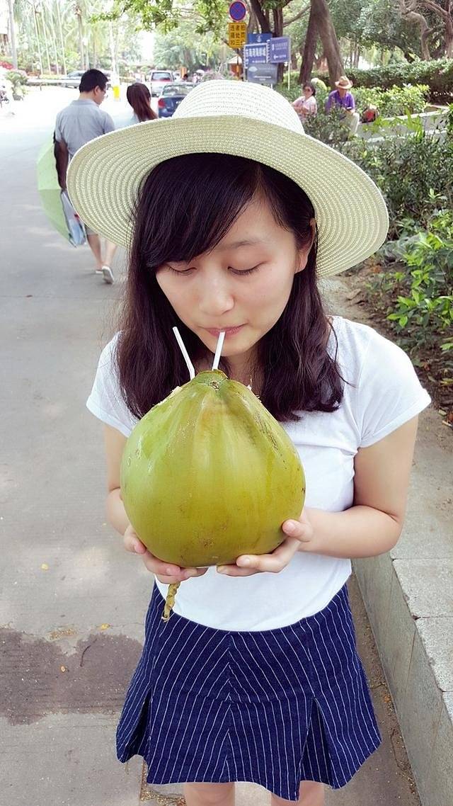 三亚的紫外线很强,晒了一会就觉得火辣辣的,我们准备回去休息会,路上很多卖椰子和芒果的,张先生挑了一个很大的青椰子,味道没有毛椰子的浓但是很清凉爽口(这个椰子我喝了一天)