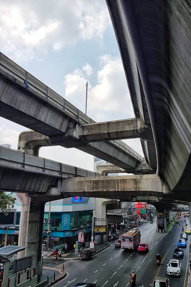 曼谷暹罗区的轻轨还是很有特点的,有二层和三层,从地面看轻轨在三层驶过真挺高啊!不知道恐高的人在三层坐轻轨会不会腿软二层又是人行道路,就在马路的上方,又与各个商场连接,从轻轨里出来,也不用去一层马路,直接在二层走,要去哪个商场,到位置直接在二层就可以走进去了!感觉还不错,我们还说这也是个分流人群的好办法