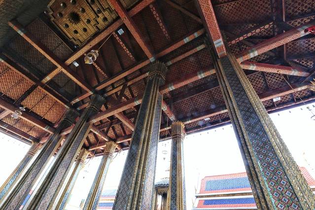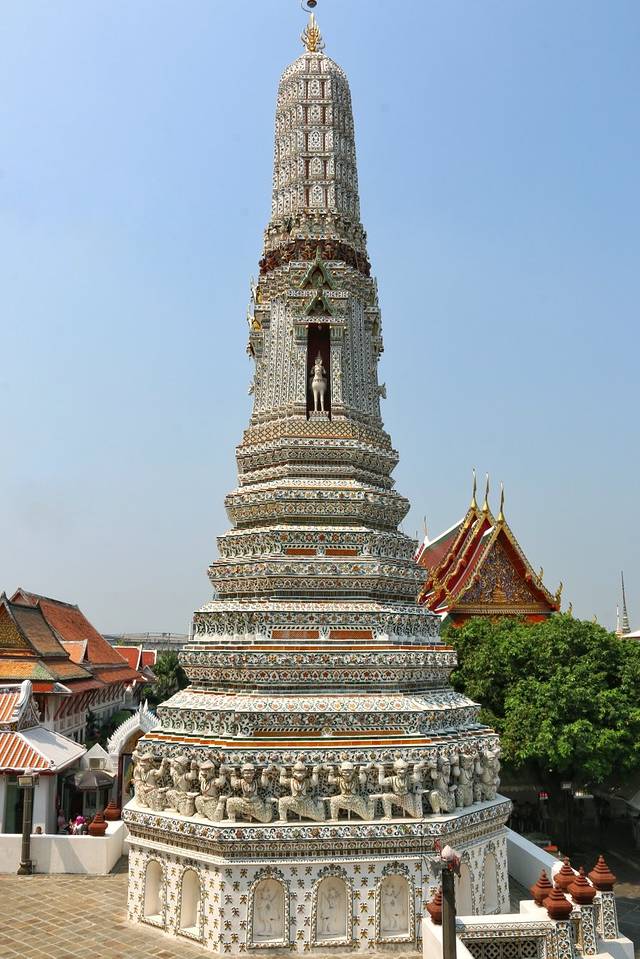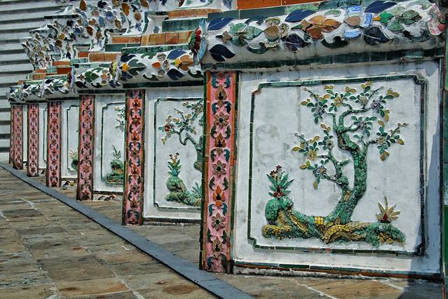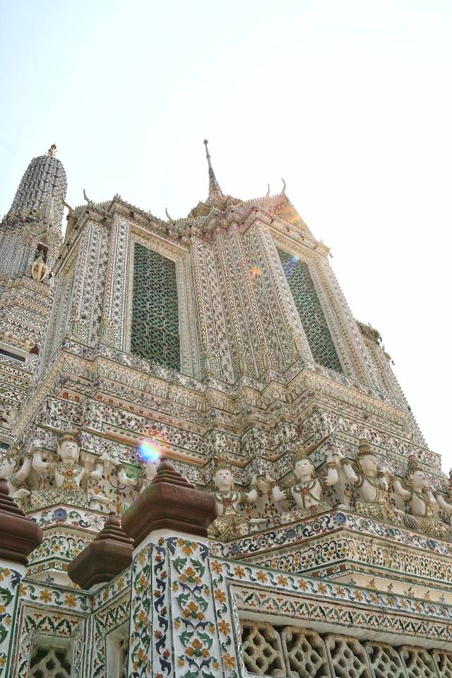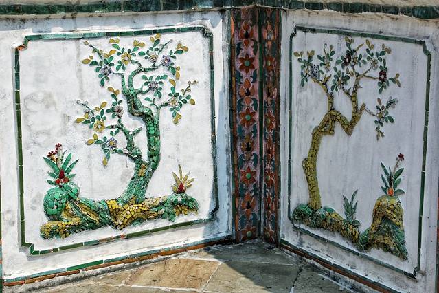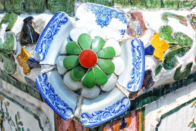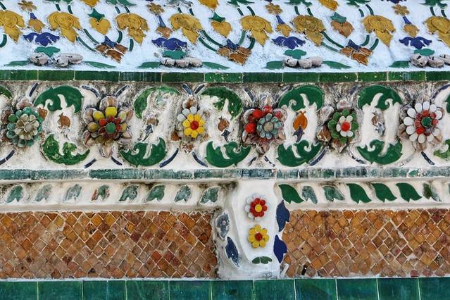 爬上中间大佛塔,远眺湄南河大皇宫,看着精致漂亮的陶瓷镶嵌花,好友感慨了一下。
