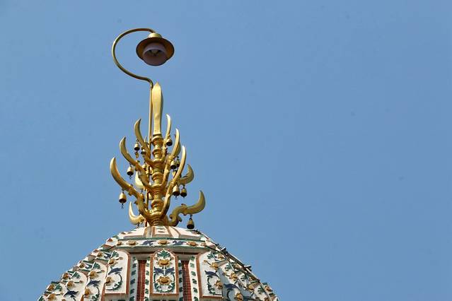 佛塔是特别的,特别之处应该是塔的外面装饰,除了复杂的雕刻外,镶嵌了各种彩色陶瓷片、玻璃和贝壳,也真是大开眼界了。