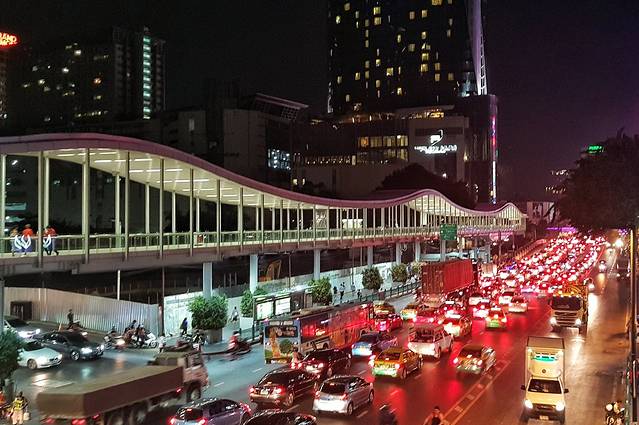 这路牌所在地就是四面佛,星期四的晚上拜佛的人尤其多。