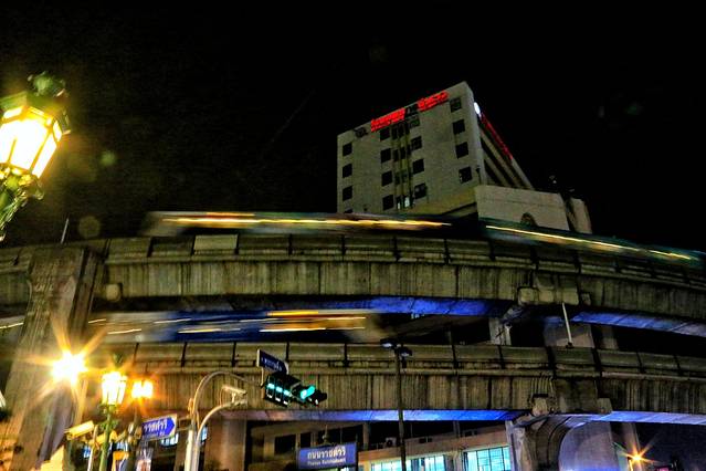 夜晚轻轨列车驶过,只剩一道光影,好像所有的浮华转瞬即逝。在朋友拜四面佛时,我真是站在那里看了很久的轻轨列车,不知为了什么!