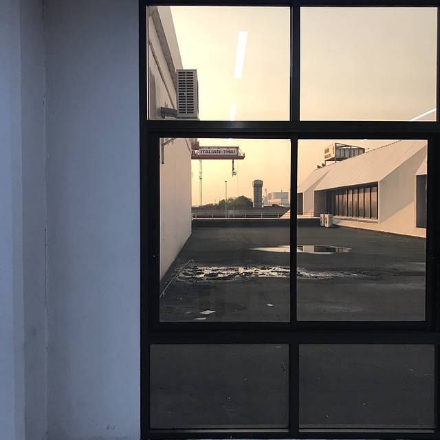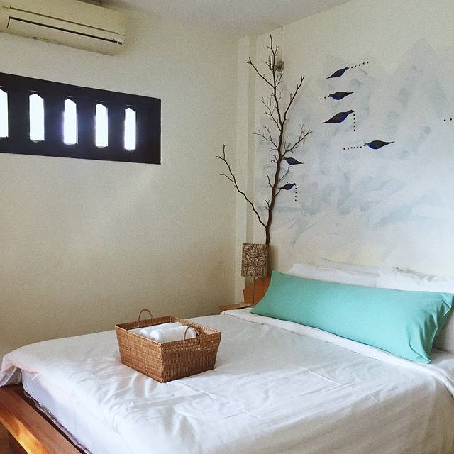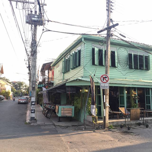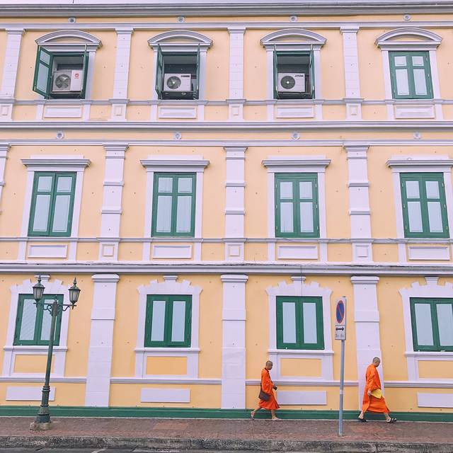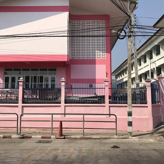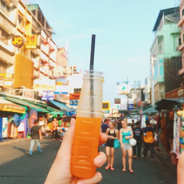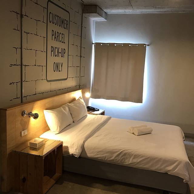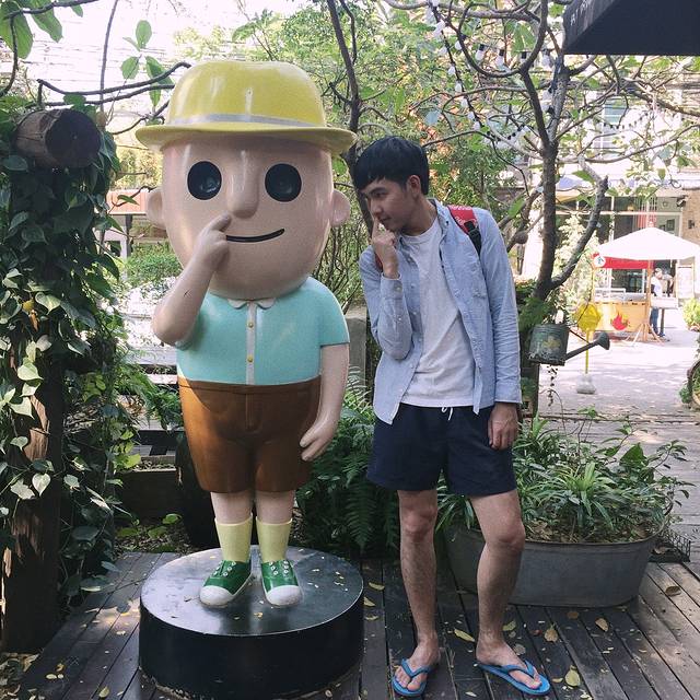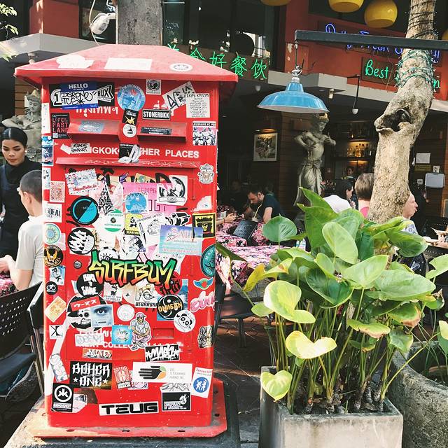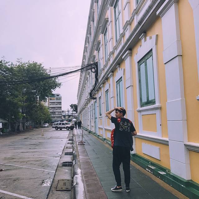 泰国出租车有很多种颜色,一辆黄绿配停在眼前,此刻的我俩就需要一个如此主动的man,也不深究什么颜色的车最便宜了,上车说明打表,一拍即合的出发了,开了好一会儿花了130฿到了考山路附近,下车步行进巷子里的The Warehouse Bangkok(仓库酒店)