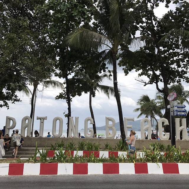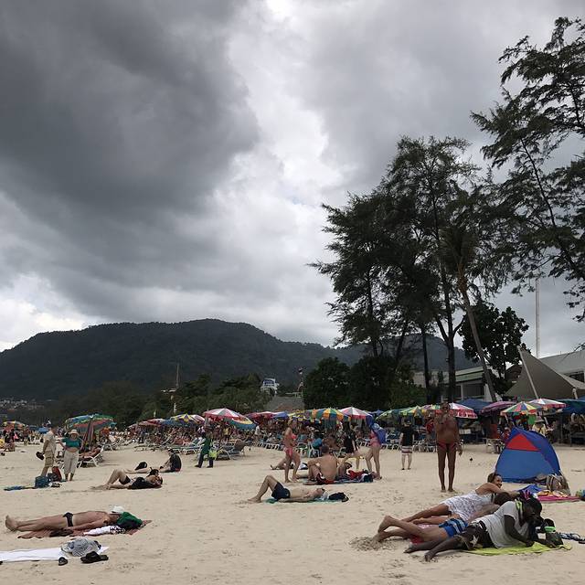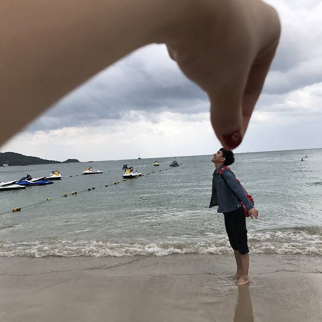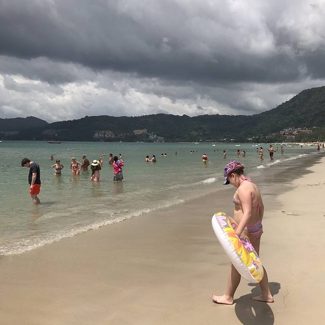 天气阴阴的,沙滩上却满是享受日光浴的歪果仁,还时不时有人过来推荐水上项目,我俩就在沙滩上踏踏浪玩玩水,芭东海滩的水还算清,但是跟之后的斯米兰根本没法比,如果没有去其他海岛的行程,还是蛮推荐来这里耍耍的