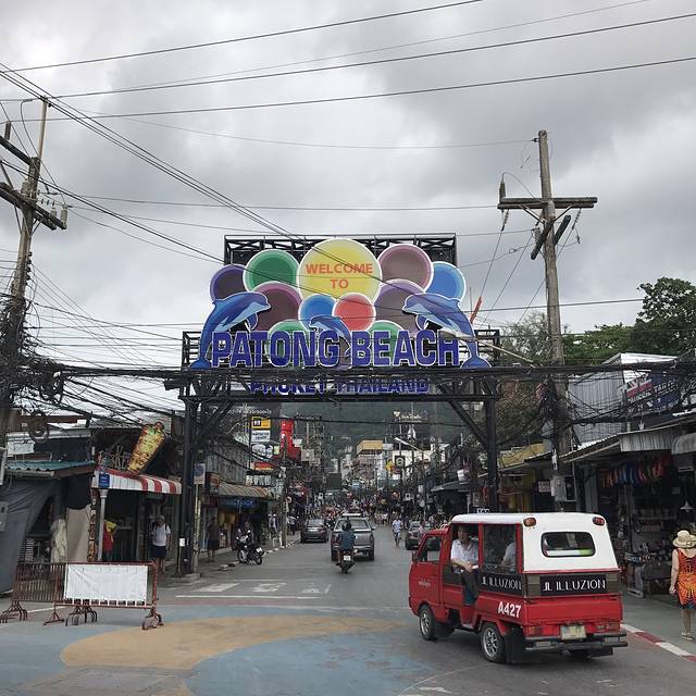 转悠了一会儿很是无聊,干脆走去芭东海滩看看,途径邦古拉街 就是传闻中的芭东酒吧一条街,晚上比较热闹,酒吧里充斥着摇摆的DJ曲或直击灵魂的弹唱,各式(或人妖或不是人妖)的妖艳美女出来拉客,会有很多举牌过来推荐人妖秀或成人表演的,路中还有卖艺表演的,好不热闹,喜欢这种氛围的不要错过