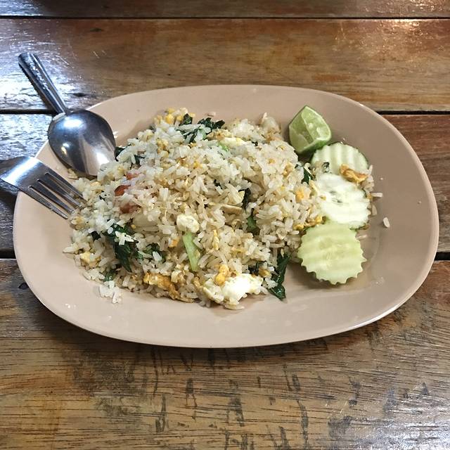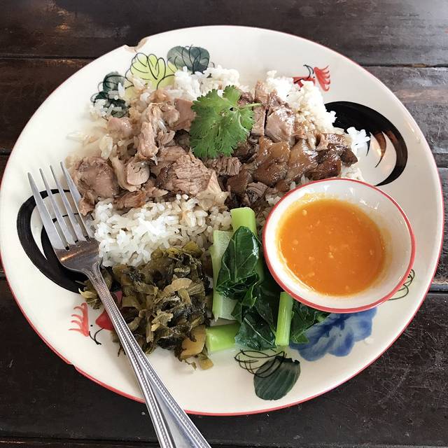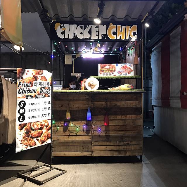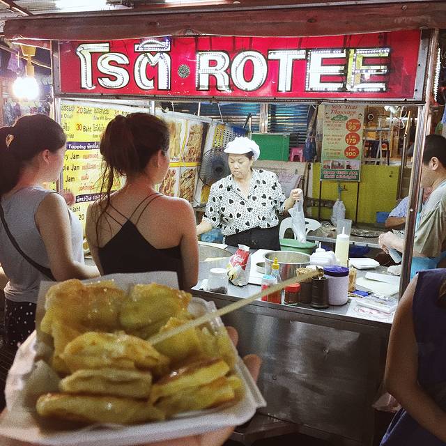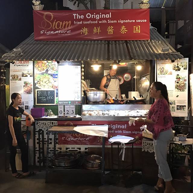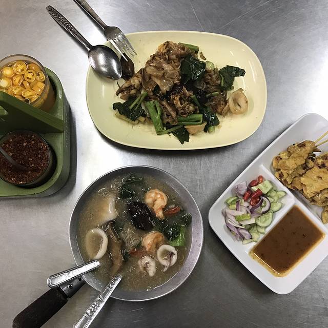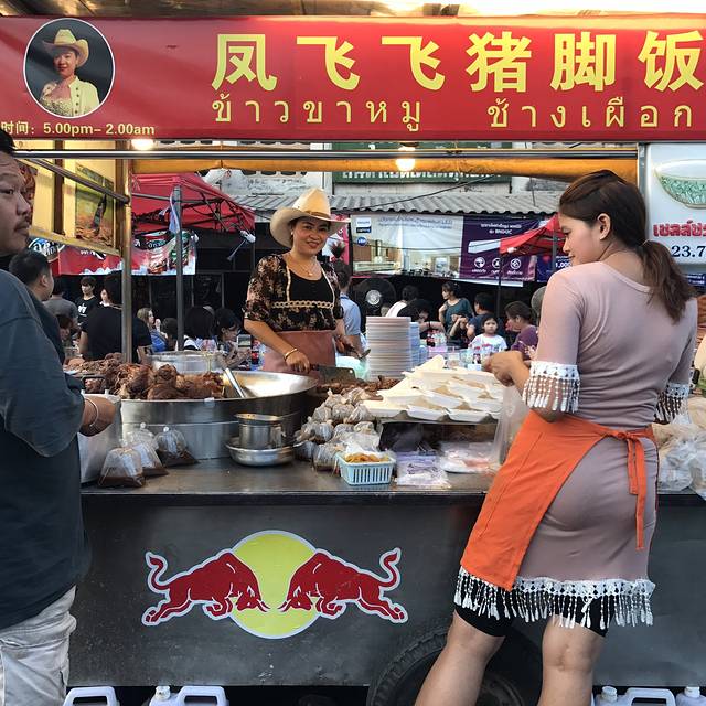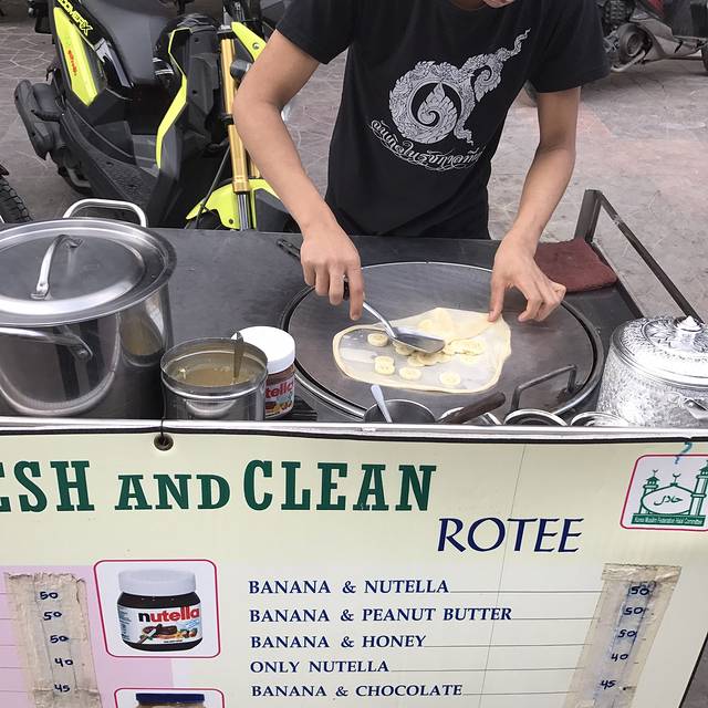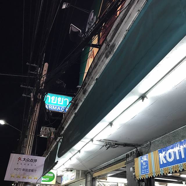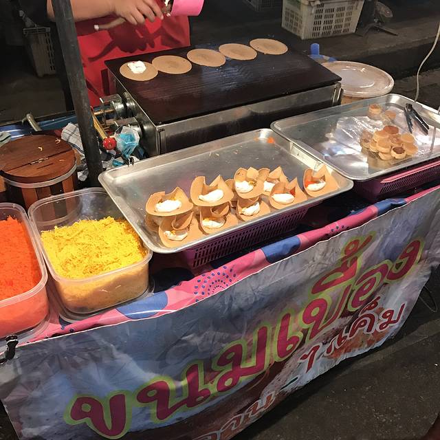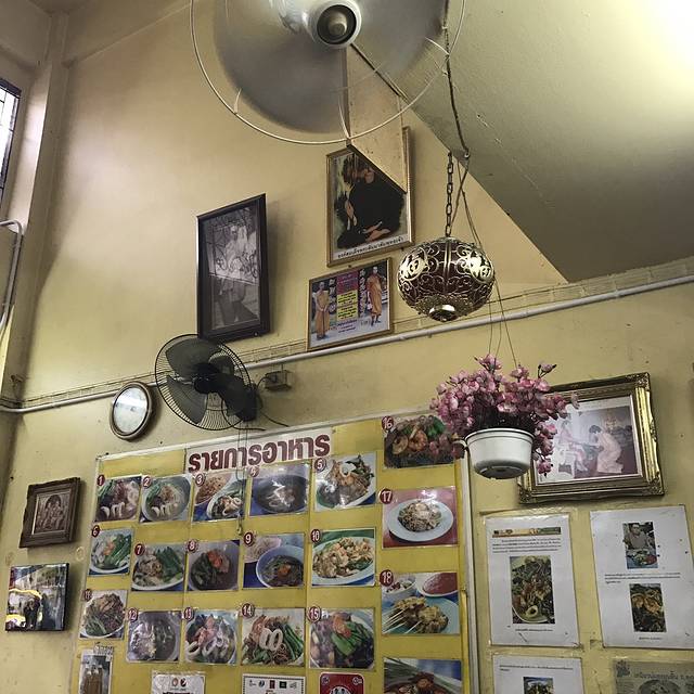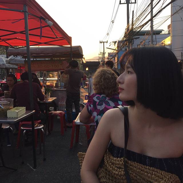 说着要吃鸡饭,却被一排门口有好多小摊的餐厅吸引进去了,菜单纯泰文,只好看着图片说号码成功点了炒河粉、米线汤还有肉串才210฿,周遭很多本地人也有少许国人,味道见仁见智,是国内吃不到的口味,我俩很喜欢,从这开始,呆霖就一路臭屁他找的吃的都很赞(确实如此)