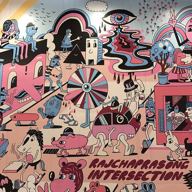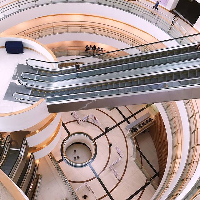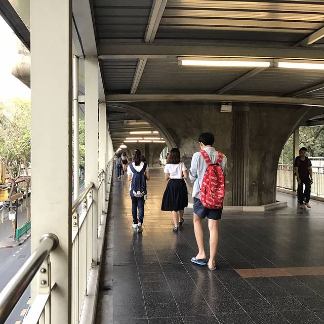 坐到National Stadium站,出口直通曼谷艺术文化中心三楼,十点开门,我俩来早了一点在天桥上转悠了下就和大部分当地人一样坐在台阶上休憩等待