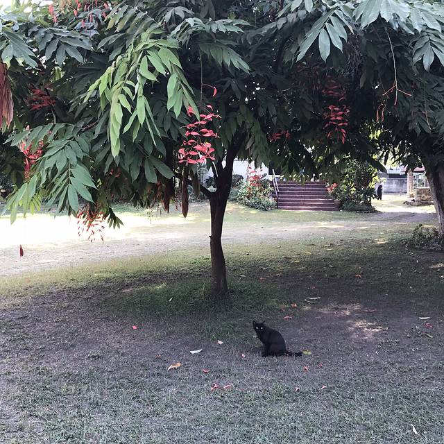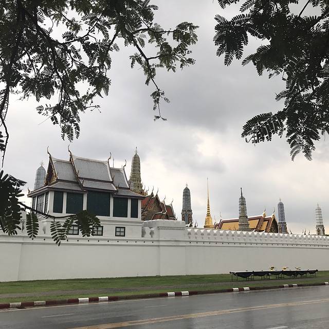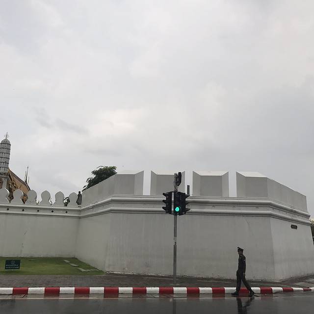无行李一身轻,接近大皇宫时遇到安检点和不少警察,没有被查,直到我俩在大路准备左拐去入口处被拦下时才知道,新国王来了,所以暂时封闭大皇宫和周遭路段,可怜那些跟团的还杵在原地,我俩不甘傻等,打算回头去吃来时经过的鸡饭