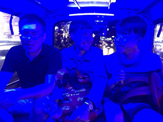去人妖秀的TUKTUK上,三个摇摆的蓝精灵,说是江西冷走过去20分钟,六个人走没多远就忍不住打TUKTUK了,这么近那么远的距离200฿,想想分摊下来也没多少就愉快的上车了,没有boom shakakaka的音乐伴奏,三位男士自配节拍在车上摇摆了起来,画面励志而又感人